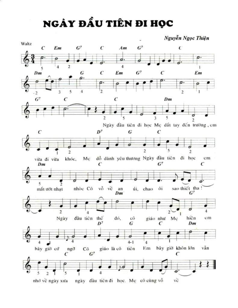 Sheet NGÀY ĐẦU TIÊN ĐI HỌC của nhạc sĩ Nguyễn Ngọc Thiện.